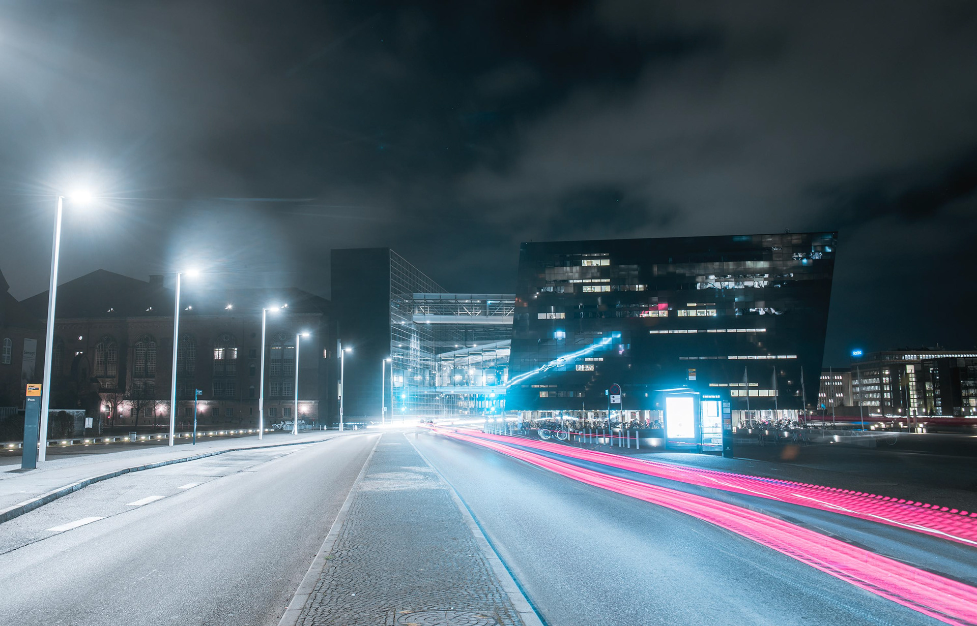 Photo series of The Black Diamond at night.